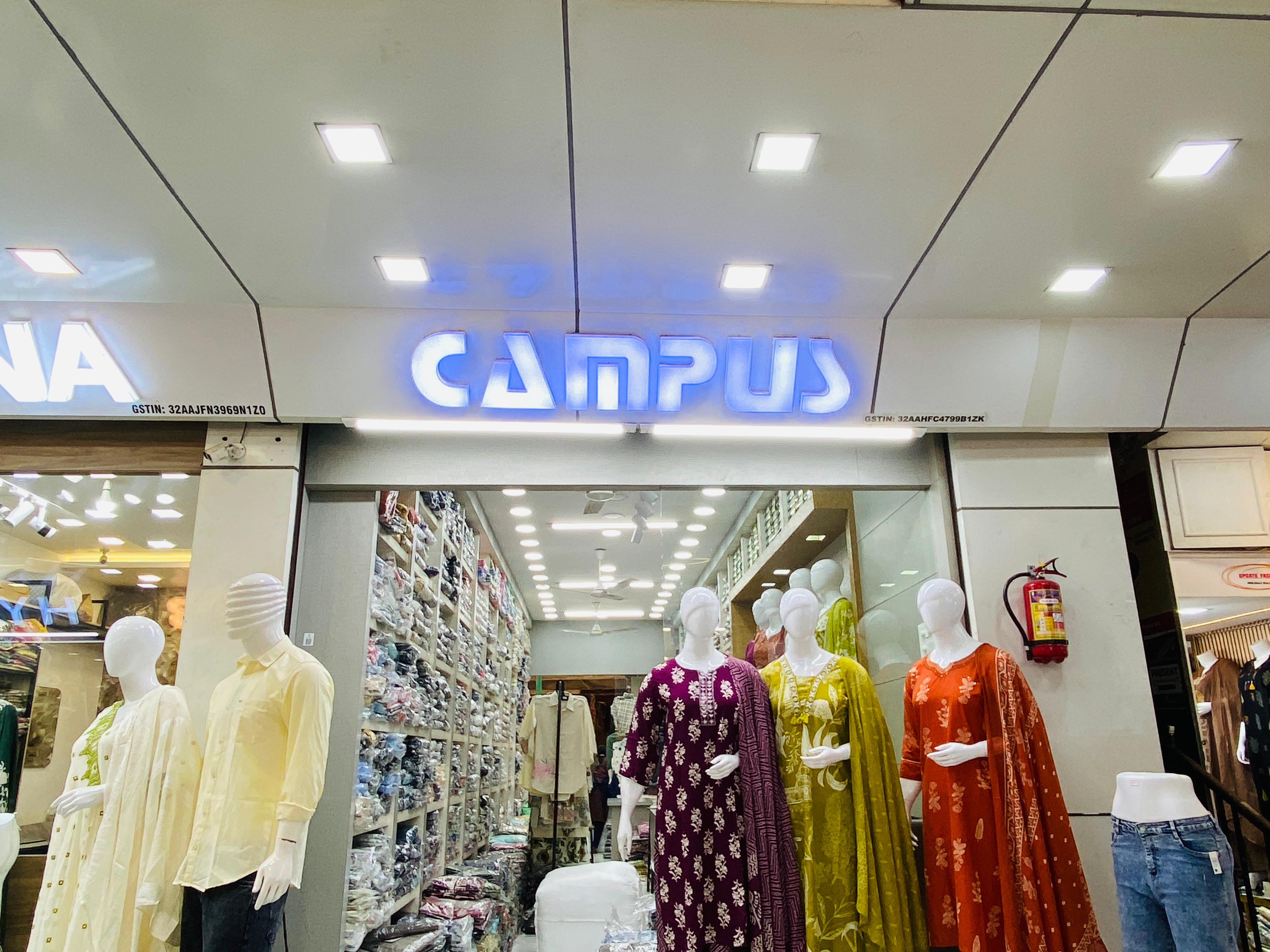 Campus Wear is a leading wholesale dealer in ladies and gents garments in Calicut. Conveniently located at Century Tower, Rajaji Road, near Mofussil Bus Stand, Campus Wear offers a wide range of trendy and comfortable clothing at wholesale rates.