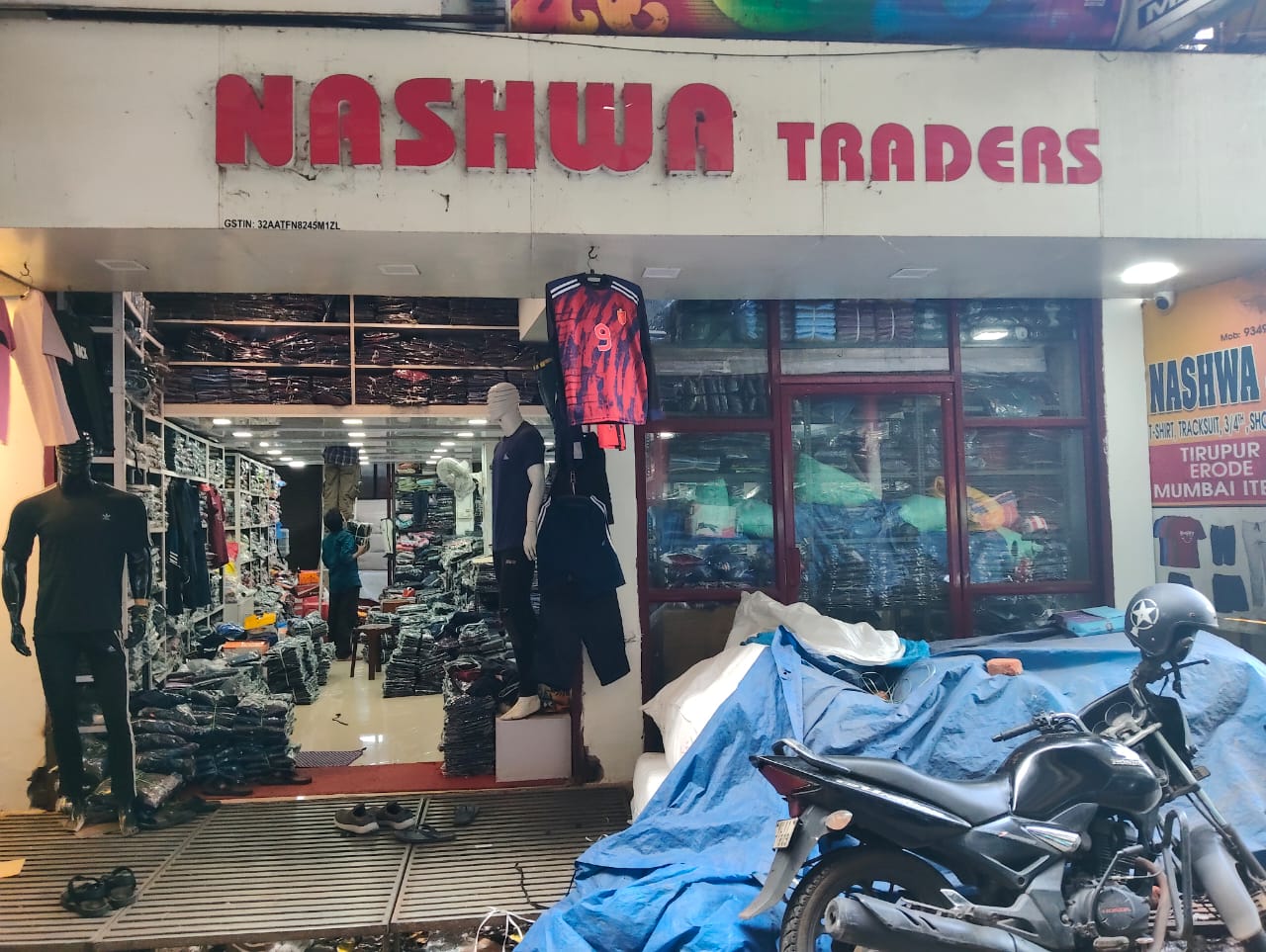 Nashwa Traders is a wholesale apparel shop located at Century Mace, near New Bus Stand, Calicut. We specialize in daily wear items sourced from Tiruppur and Mumbai, offering a wide variety of comfortable and stylish clothing at affordable wholesale prices.
