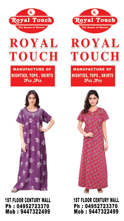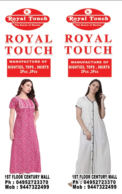 Royal Touch is a premium apparel and lifestyle store located at Century Mall, 1st Floor, Radadi Road, Calicut (673004). We are dedicated to providing quality clothing and fashion essentials that combine comfort, elegance, and modern style.
