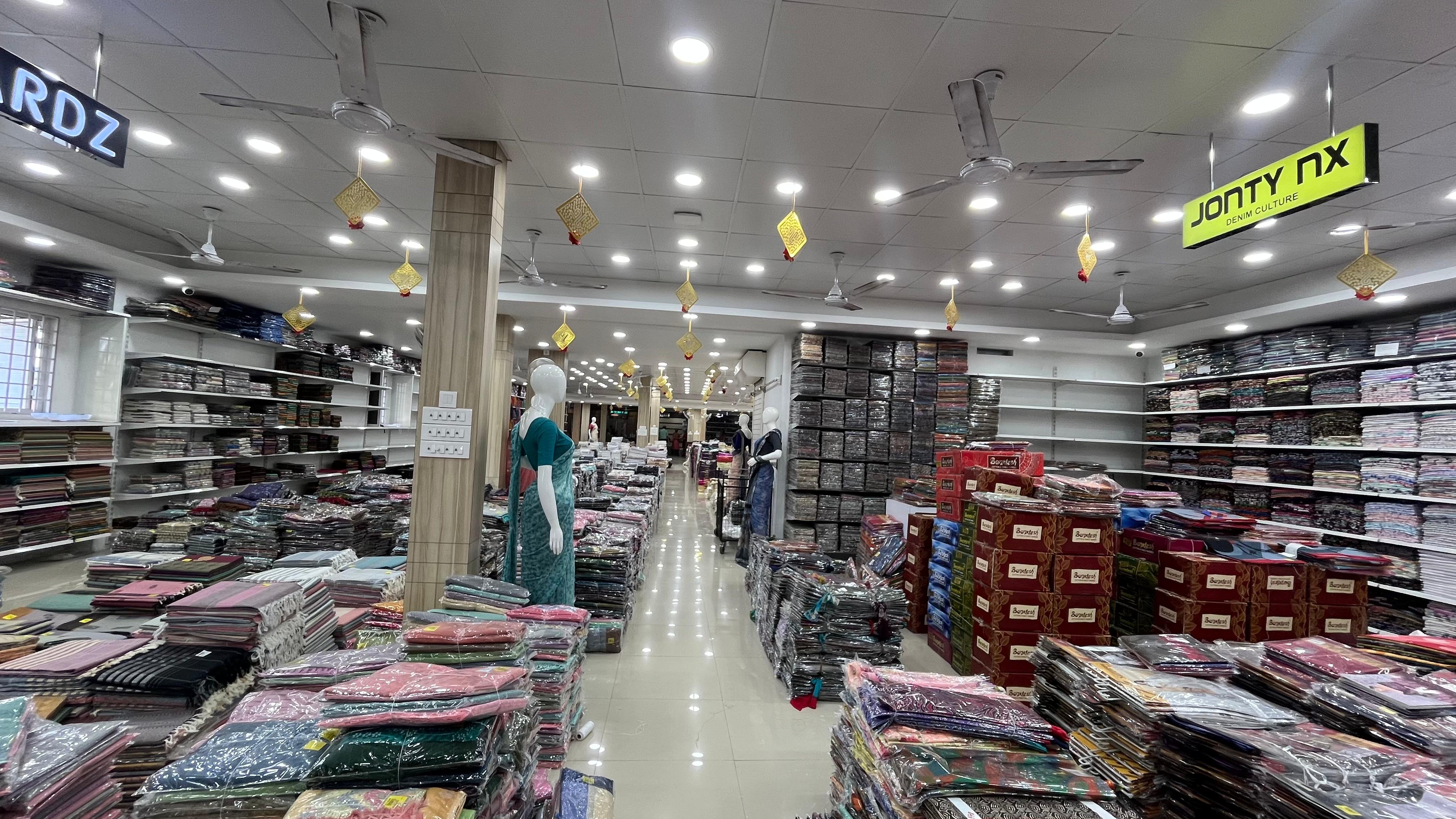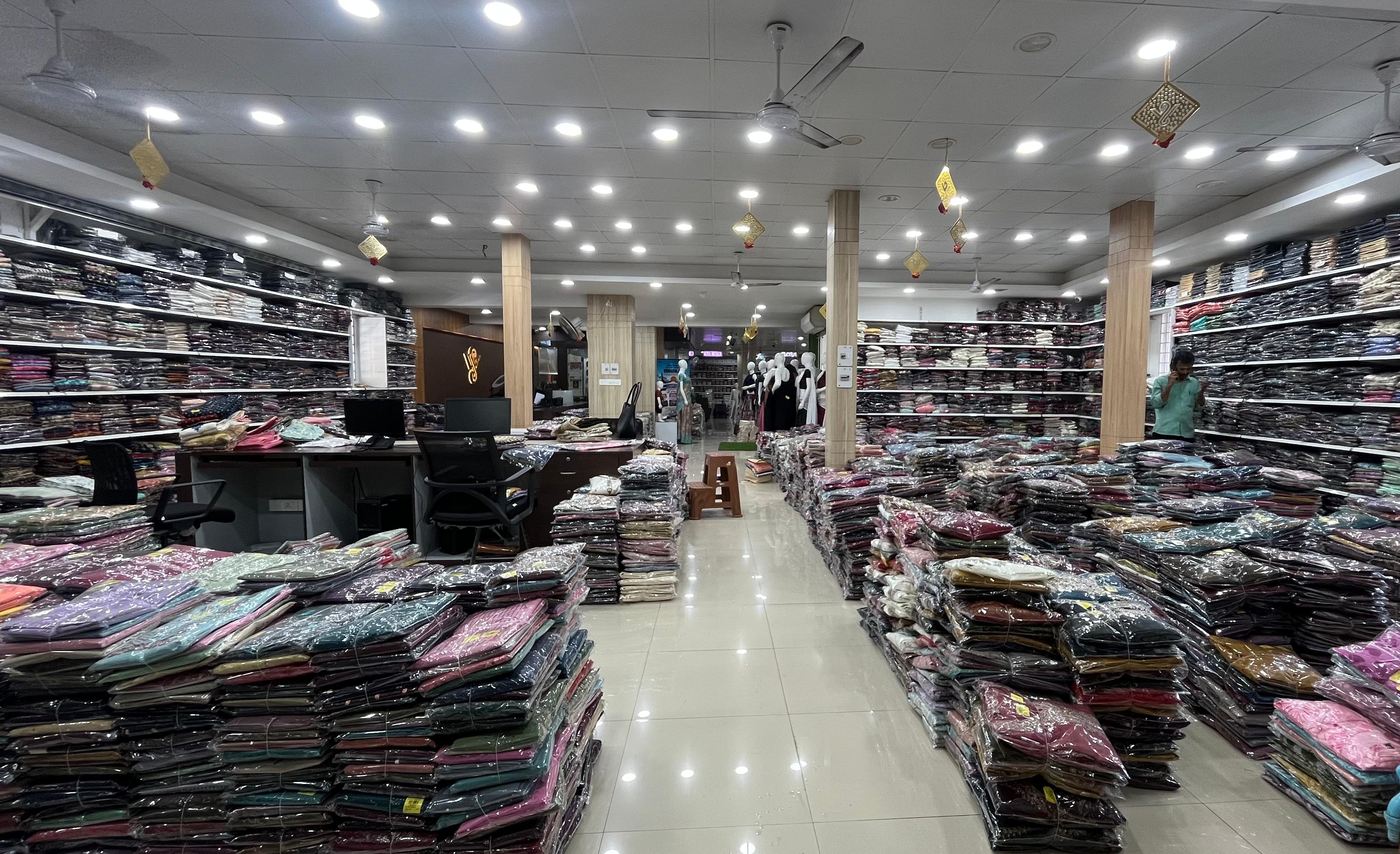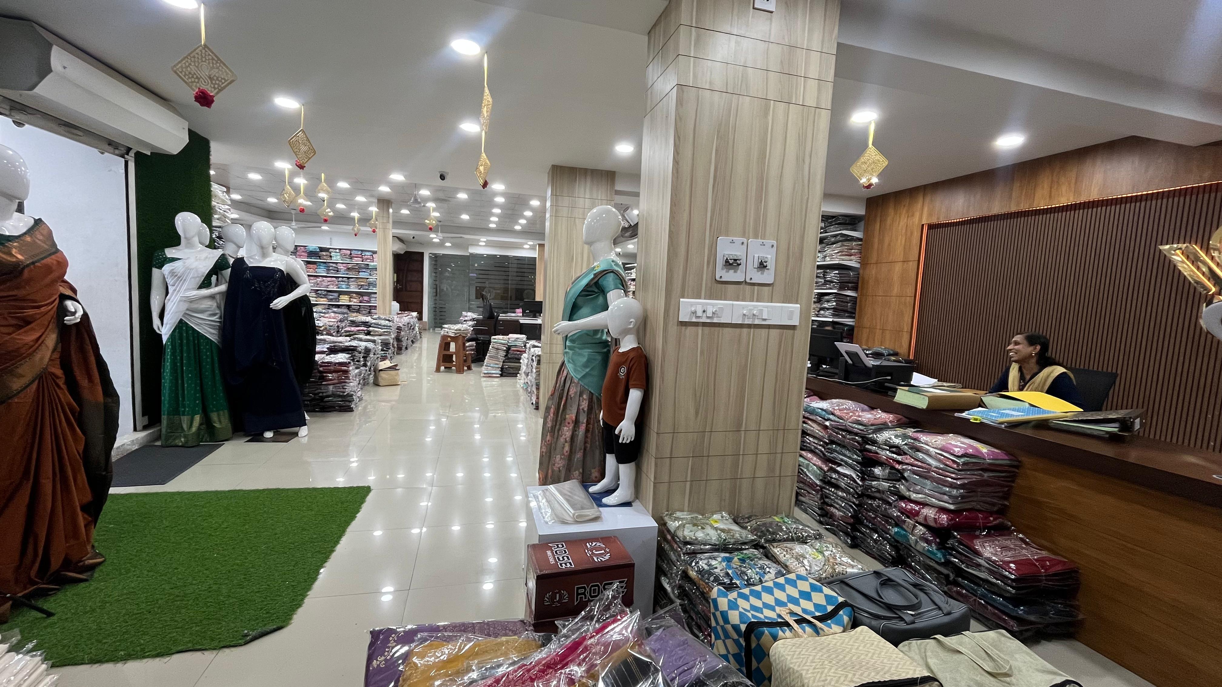 Spread across 50,000 sq. ft., SV Sarees and Dress Materials offers an extensive range of high-quality clothing sourced from eminent manufacturers across the country. The store is designed to serve boutique owners, retailers, and resellers with variety, quality, and affordability.