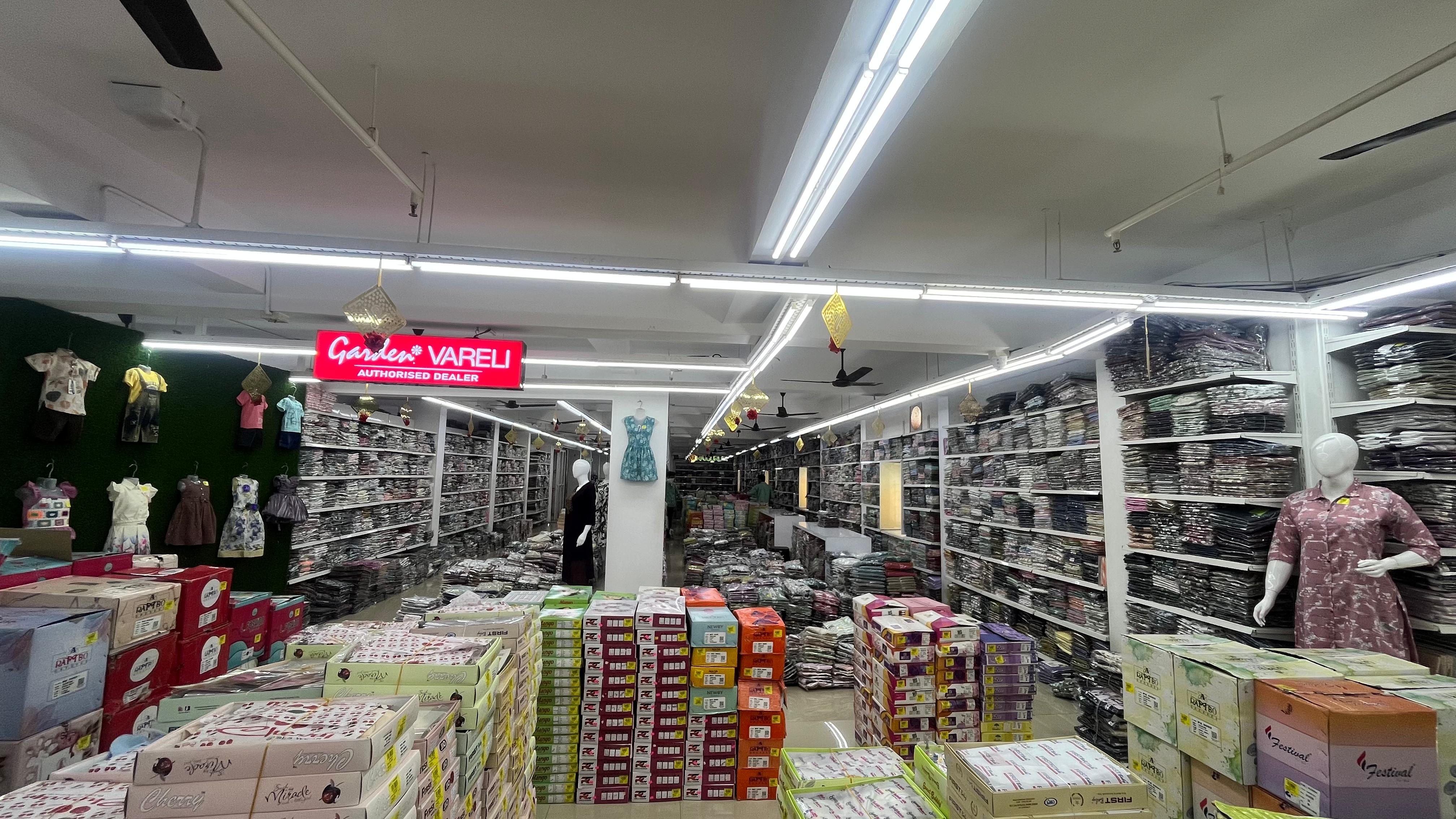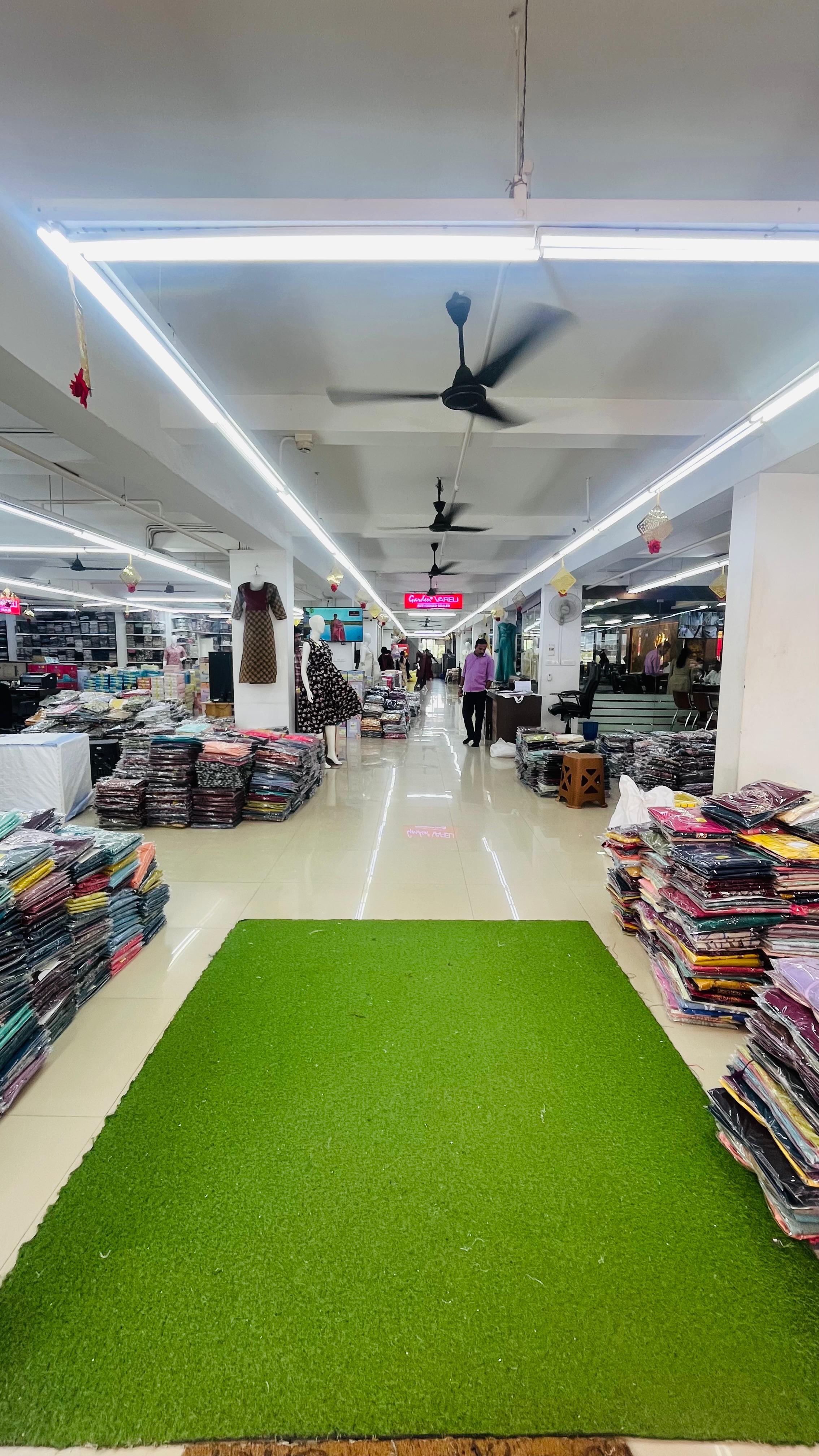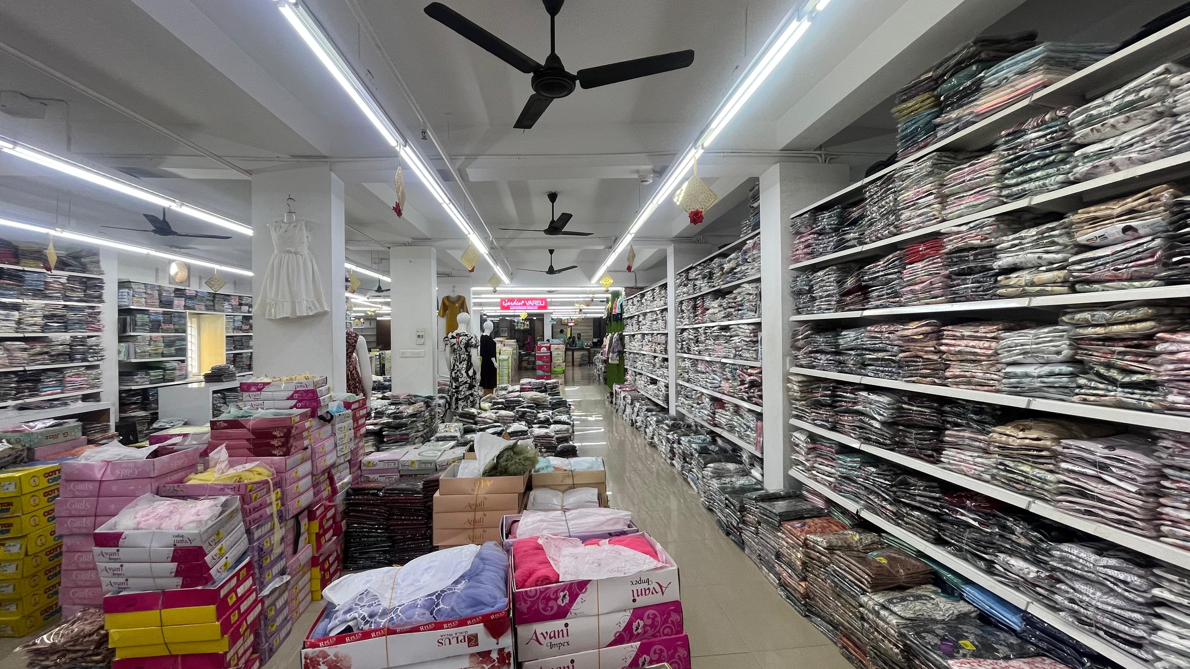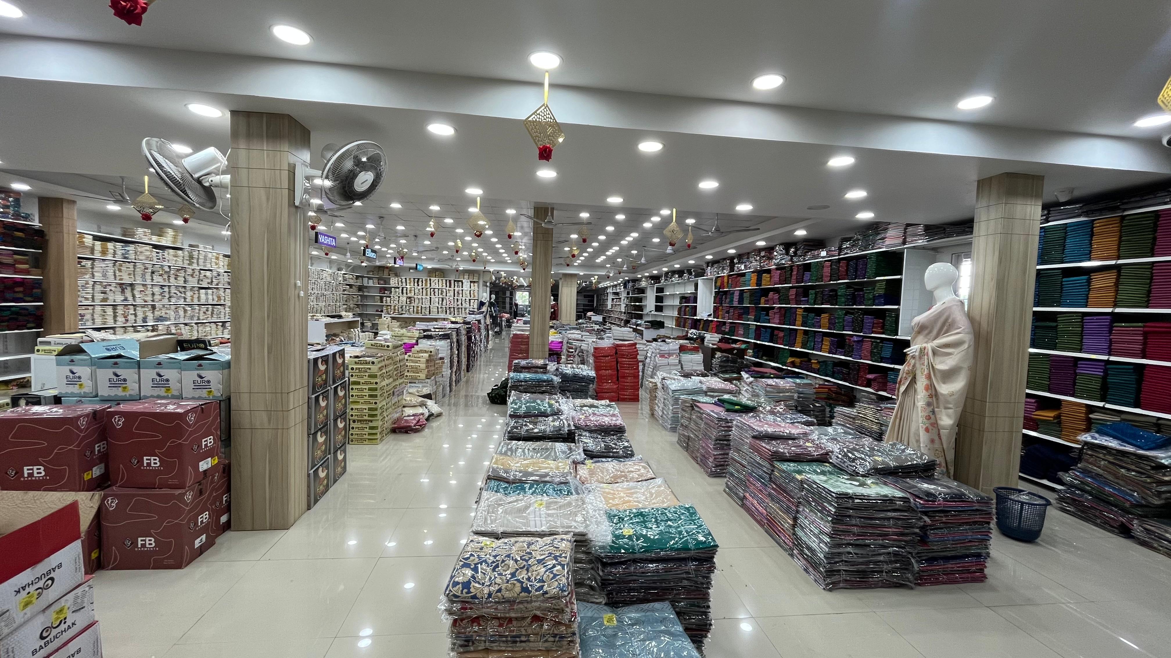 Spread across 50,000 sq. ft., SV Sarees and Dress Materials offers an extensive range of high-quality clothing sourced from eminent manufacturers across the country. The store is designed to serve boutique owners, retailers, and resellers with variety, quality, and affordability.